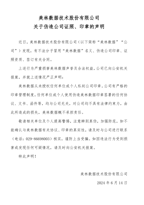 關(guān)于偽造美林?jǐn)?shù)據(jù)技術(shù)股份有限公司證照、印章的聲明
