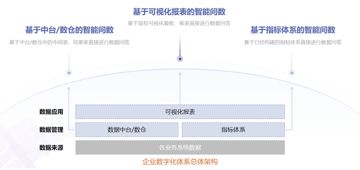 ??該模式適用于已經(jīng)構(gòu)建了豐富的可視化報表,想要通過大模型技術(shù)解決制式報表指標固化、智能化水平不足的企業(yè)。